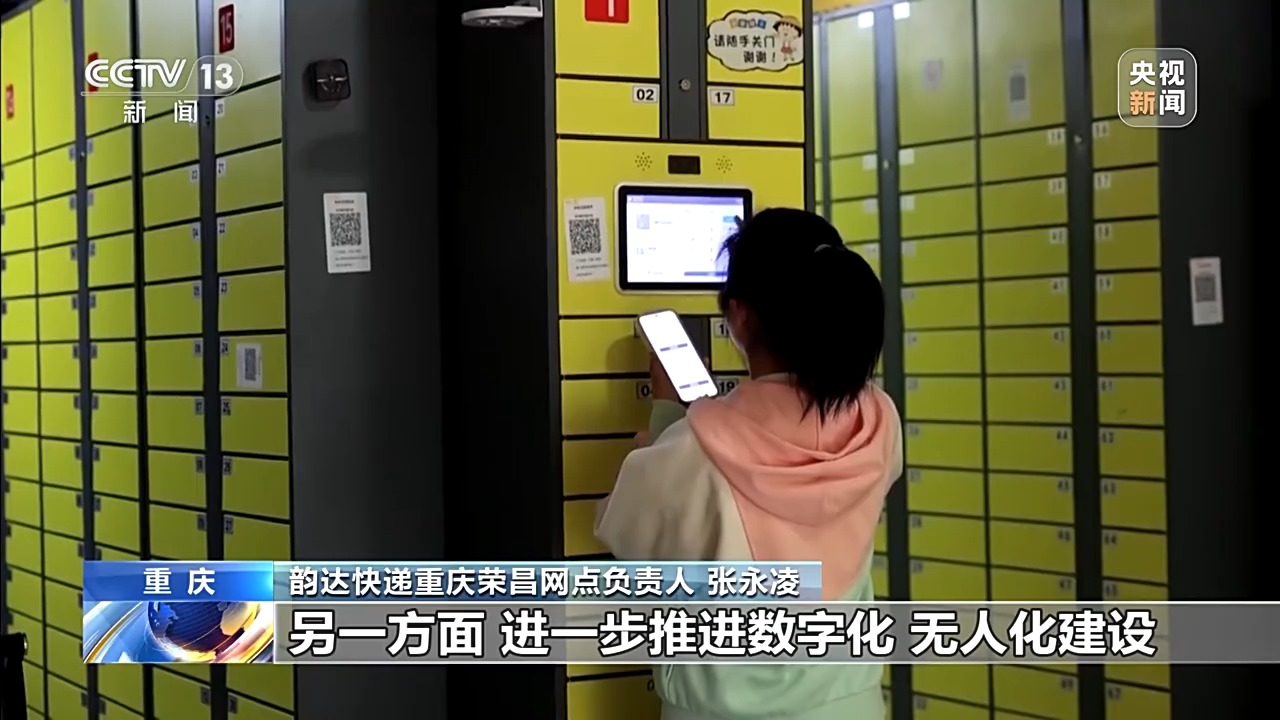 韵达快递重庆荣昌网点负责人 张永凌:后续,我们将继续提升末端服务质量,一方面扩大门店驿站的覆盖范围,增加铺设密度,缩短服务的半径;另一方面进一步推进数字化、无人化建设,通过技术创新提质增效,让消费者和用户取件更便捷。